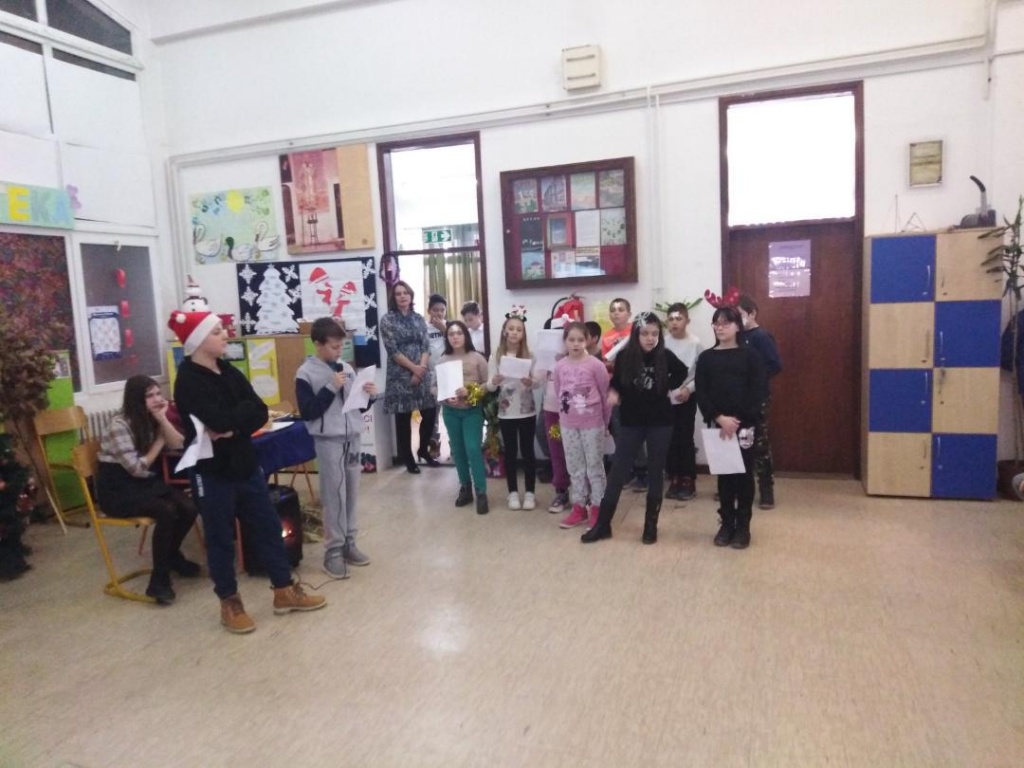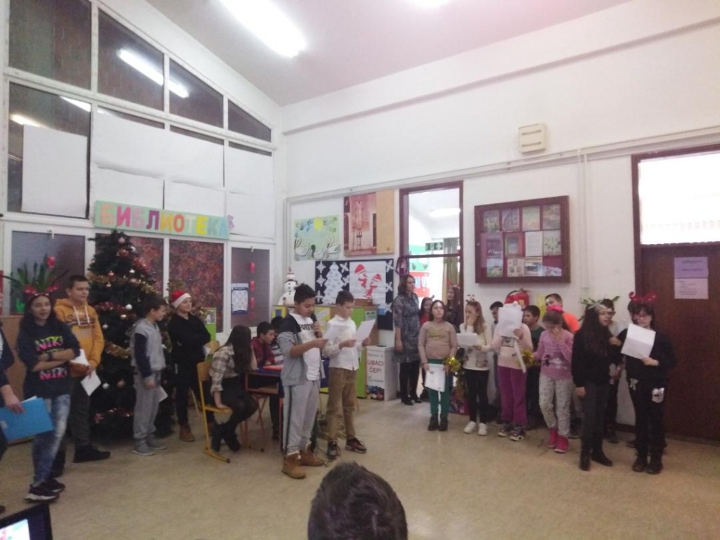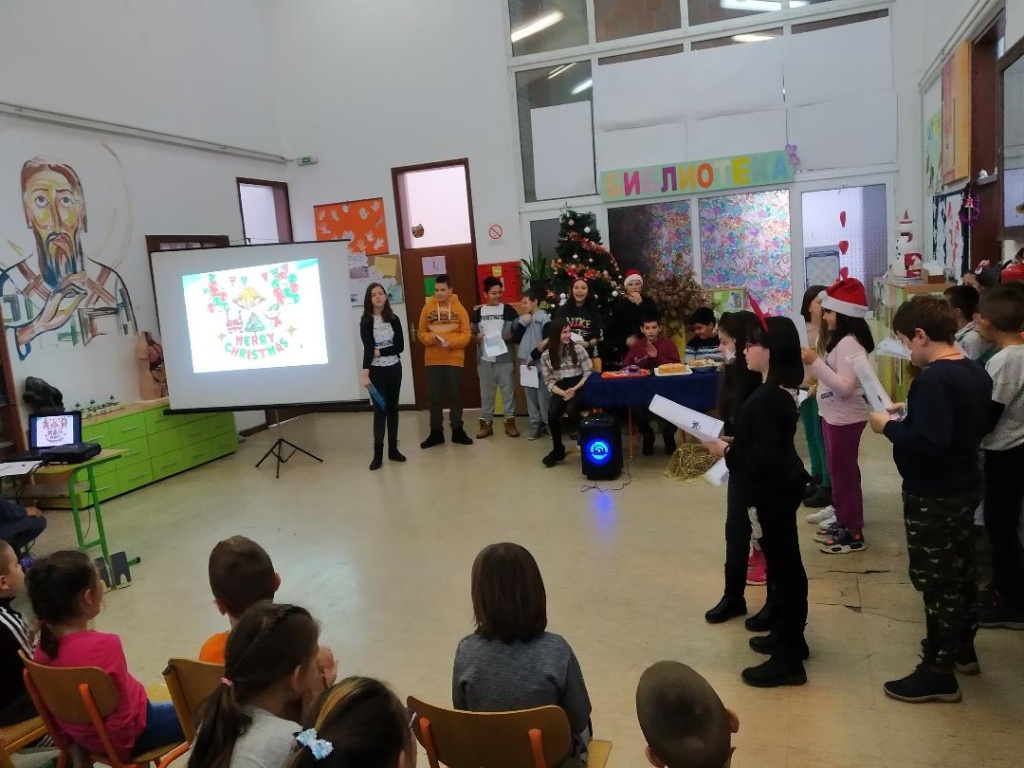 На енглеском језику смо испричали како ми то радимо код нас за Бадње вече и рано ујутро на Божић. Певали смо божићне песме (Christmas carols), а уз слајдове смо испичали и причу о Светом Николи. Ова нам је тема била од великог значаја јер смо указали на изворност мита о Деда Мразу. Упознали смо ученике да је лик и дело Светог Николе преузела америчка потрошачка култура и да смо тако добили личност Деда Мраза (Santa Claus).