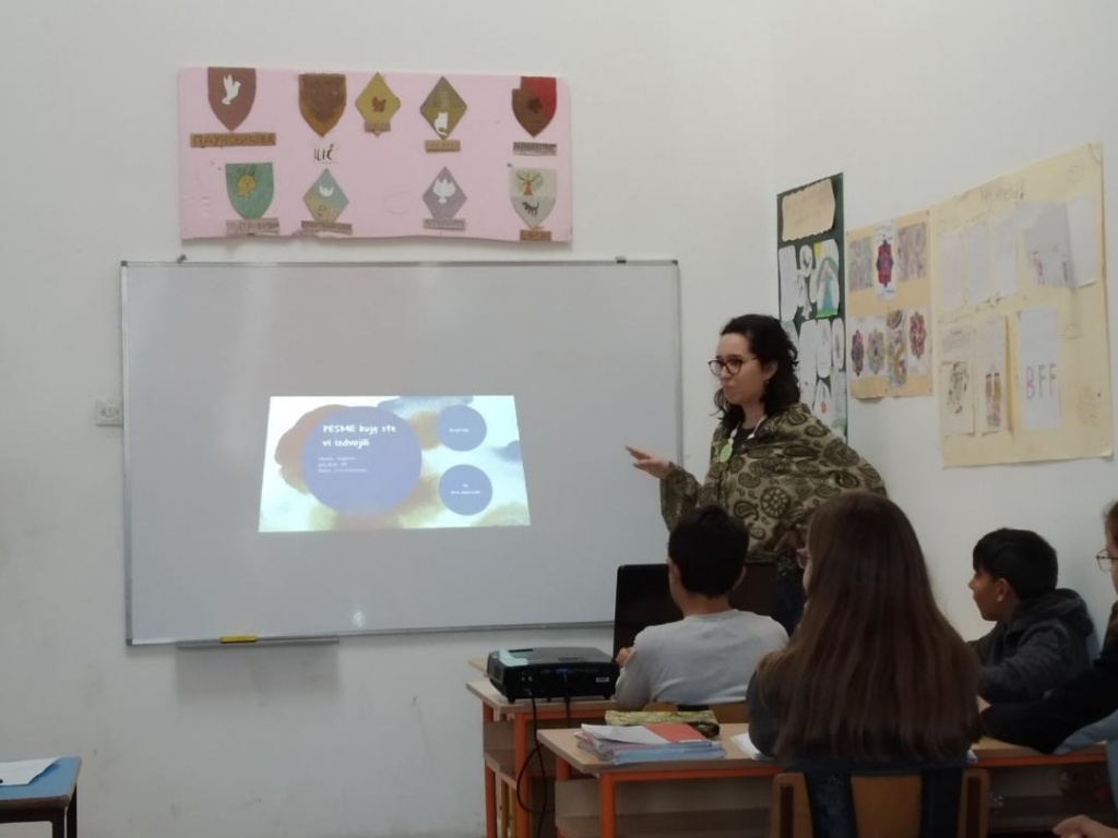 Ове среде одржан је огледни час из српског језика у шестом разреду који је био посвећен тумачењу текстова модерне популарне музике.