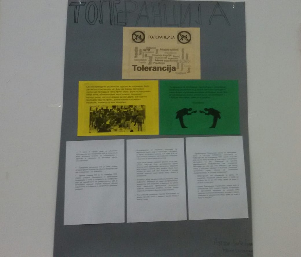 У уторак 20.11.2018. обележен је Међународни дан толеранције и Светски дан детета. Ученици од V до VIII разреда, у холу школе, на хамерима су приказали своје виђење толеранцијe. Од I до IV разреда ова два датума обележена су такође радовима ученика на часу ликовне културе. Атмосфера је била сјајна о чему говоре радови ученика.