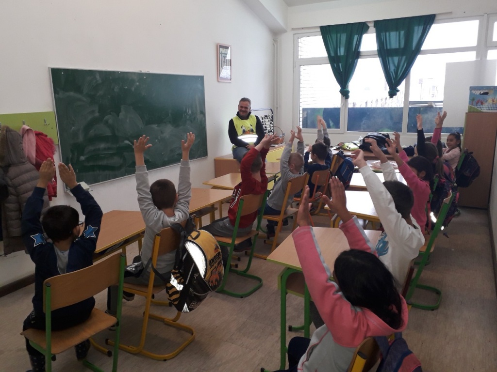 Нашим најмлађим ђацима у организацији Паркинг сервиса одржано је предавање под називом "Ђаци Вас моле, успорите поред школе". Циљ овог предавања је да се деци на једноставан и забаван начин објасне и приближе правила понашања у саобраћају. Ученици су добили прслуке на поклон, што их је посебно обрадовало.