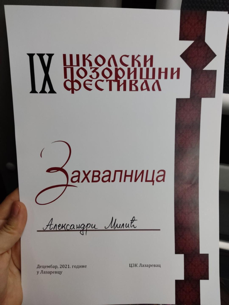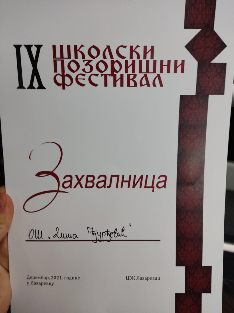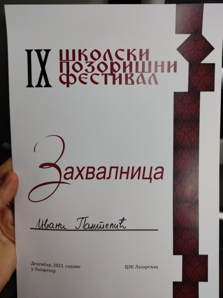 Пре само три године наше просторије испуњавала је граја дечјих игара. Школски позоришни фестивал, који је основан у нашој основној школи, постао је општински фестивал у организацији наставнице српског Александре Љубојевић, а ми ћемо на њему наступити са две представе. Прва од њих играће се у уторак у 12 сати. Припремили су је ученици шестог разреда са наставницом енглеског, Александром Милић. Ако вас занима шта се то деси кад вилењаци ступе у штрајк, ово је права представа за вас. Друга представа са којом ћемо се представити јесте историјско-еколошка драма Марко Краљевић и Муса Кесеџија, која ће вас насмејати, подсетити на народну традицију, али вас и упутити на значај правих вредности. Њу су припремили ученици седмог и осмог разреда са наставницом српског, Иваном Пантелић. Дођите, очекујемо вас!